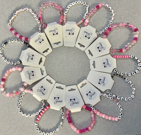 Handmade bracelets featuring the name of Owen's Outfitters. Assorted styles, colors, and sizes available.